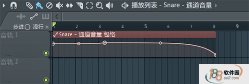 5、我们会看见这条包络线除了两端有节点外中间也有一个,鼠标移动到该节点上就会变成上下箭头形状,拖动就可以改变包络线的形状(可以使其成对数或指数式变化),如下图所示: