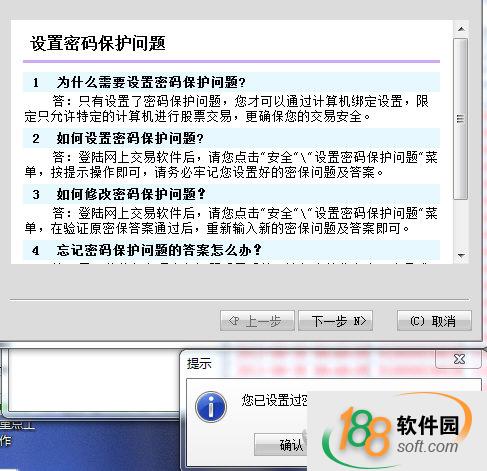 3、设置密码保护问题:通过设置密码保护问题,进行计算机绑定设置,限定只允许特定的计算机进行股票交易,确保交易安全。