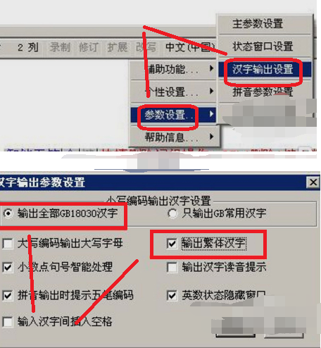 1、打开软件,先进行“参数设置”>>“汉字输出设置”;勾选“输出全部GB18030汉字”、“输出繁体汉字”。