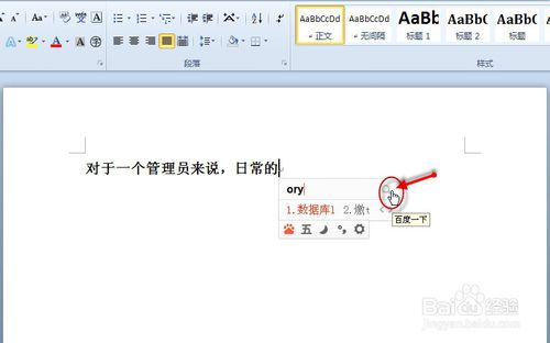 在日常的文本录入过程中,可以在不打开IE浏览器的情况下,直接百度一下想要的关键字,如下图所示,在WORD文档录入过程中,直接对“数据库”(候选首位)进行百度