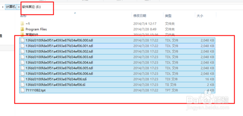 5、进入目录后,按下图所示,依次进入文件夹,找到播放记录文件列表,大部分以.tdl为后缀。并将其全部复制到E盘根目录下,如图所示: