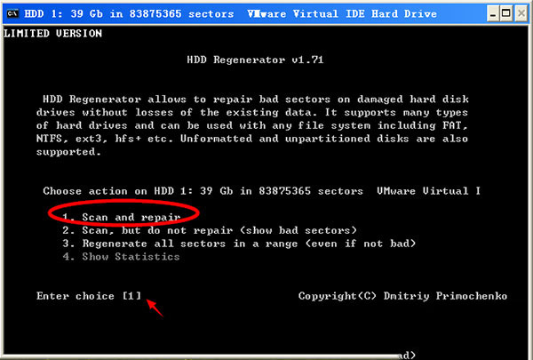 HDD Regenerator Shell直接工作于硬件底层,不会影响硬盘的逻辑结构。即使您的硬盘已经得到修复,文件系统可能仍会保持着早先所标记的坏道信息,如果您想清除这些早先的坏道信息,可以用PQ(分区魔术师)之类的软件对硬盘重新分区。