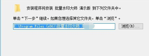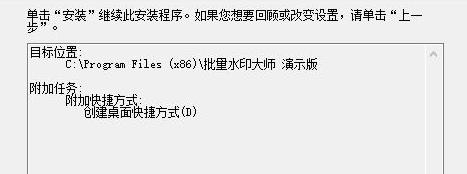 1、点击.exe启动,这里就是软件的安装页面,会提示您选择软件保存的位置,这里默认C:\programFiles(x86)\批量水印大师