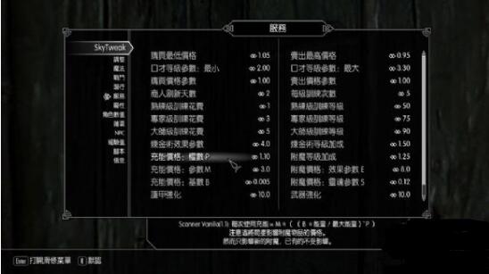 MOD说明:上古卷轴5:天际 内置修改工具v4.4 ;将游戏内基础设置非常详细的分类,比如一个魔法派系可以分别调整法术强度,时长,伤害,消耗。一个掉落伤害可以分别调整高度,受到伤害多少,总之非常细致;兼容所有MOD,把某个设置放着不动就不会改变游戏原来的设置。
