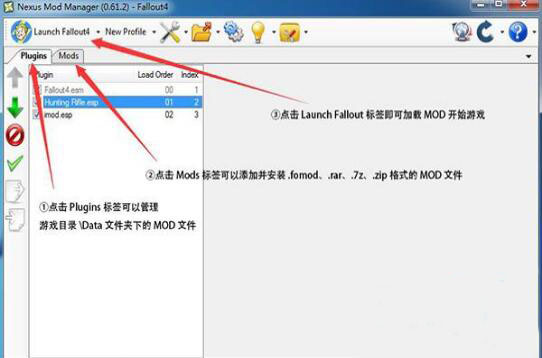 3.点击 Launch Fallout标签即可加载MOD开始游戏