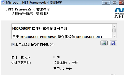 1、双击下载好的.NET Framework 4.0下载版安装包,弹出如下窗口,勾选同意协议,点击安装