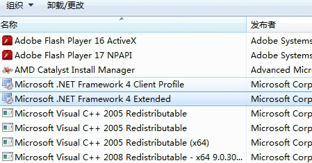4、打开控制面板中的程序和功能,看到两个.net framework组件,说明安装成功