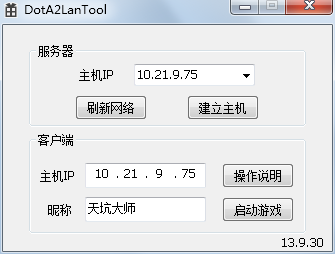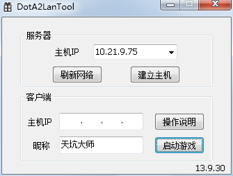 需要局域网游戏的朋友们 建立好局域网后点开工具,主机服务器点击“建立主机”,这是会出现一个dos窗口,我们不去管它 在“客户端”下的主机ip上填上开启服务器的主机ip,如图所示: